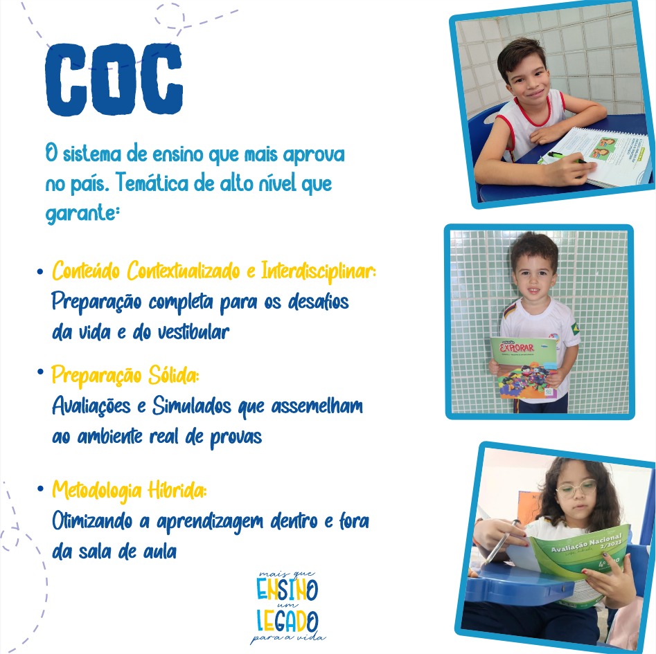 Além das ferramentas do Google for Education, do material didático físico e digital do Sistema COC, Plataforma Mind Makers para aulas de Pensamento Computacional o Colégio segue ampliando a parceria com a Geekie One. Essa plataforma, por exemplo, favorecerá o acesso a relatórios de desempenho de cada estudante, baseados em dados produzidos por inteligência artificial, facilitando o suporte dos professores e da coordenação pedagógica, em parceria com a família do aluno.